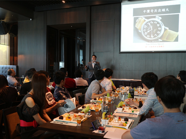此次講堂從台北移師到新竹美麗信酒店,藉由寬敞舒適的空間與精緻下午茶點,為這場講座暖場。本次非常感謝新竹美麗信酒店為本場的來賓空出了非常大的空間,提高了與會嘉賓的舒適度。上半場主題「進擊BASEL鐘錶展」由前進錶展第一線採訪的城邦國際名表總編輯劉必祥分享錶展所觀察到的產業趨勢,透過五大分類為來賓們精準的解說今年的表壇重點。首先,從內行富豪不可錯過款式、指出技術力,與高互動性的特色表款。中價位錶款一直上演設計至上、技術為用的群雄爭霸戰,而今年的較勁意味更加濃厚,總編輯以中價奇兵出頭天為題,再次引起聽眾的高度興趣。當然,照顧讀者的荷包也是我們的責任,閉著眼睛都要入手的款式引起來賓及資深錶迷的討論!當然,女錶在這幾年的蓬勃發展也是不容小覷,超高工藝水準、結合複雜功能和趣味性,還有可以預測愛情的款式,令人驚艷。最後,總編輯回應市場對品牌的款式期待,劃下了上半場意猶味盡的句點。