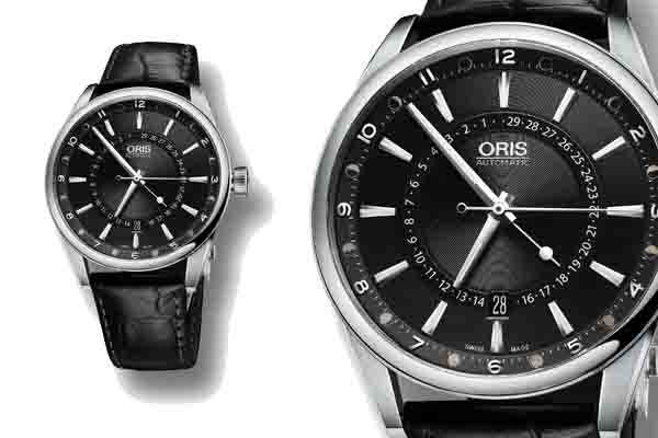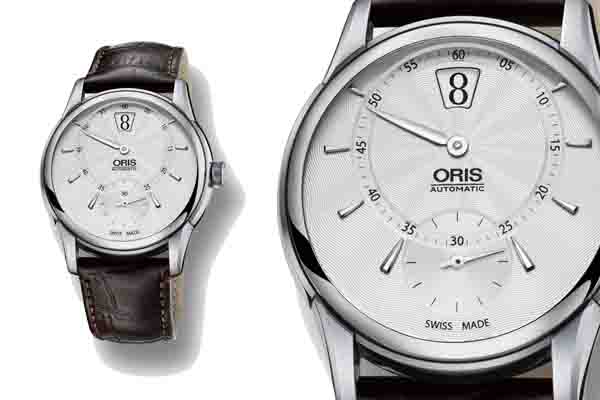 Oris首度推出擁有此種精細的功能,是製表工藝的精華,僅採兩個計數器來轉動分與秒。銀色扭索狀裝飾面盤搭配突起的刻度,螢光刻度及拋光指針,防水功能3倍大氣壓力,多片式不銹鋼表殼、表冠。優雅表殼結構及圓弧型的藍寶石水晶表鏡,做工細緻。可依個人喜好選擇小牛皮、鱷魚皮表帶或是金屬鍊帶。