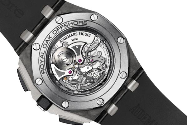 其堅固錶殼以鍛造碳製成,愛彼在2007年推出的皇家橡樹離岸型腕錶中,首度把這種航天物料引入製錶界。此外,以陶瓷和鈦金屬製造的按鈕分別置於不同的鈦金屬護橋內,並由4顆清晰可見的螺絲固定在錶殼主體上。