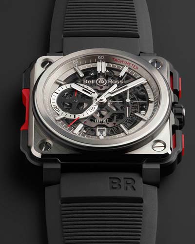 此次發表的BR-X1,是難得一見的鏤空飛行計時碼表腕錶,BR-X1更是使用最先進的五級鈦金屬作為錶殼材質,搭配紅色碼錶按把,讓BR-X1有著鏤空錶的奢華、商務菁英追求的精準計時,以高科技陶瓷與橡膠複合呈現未來戰機堅若坦克卻輕如蝶翼的機動性能,面盤最為點睛之處為渦輪造型倒數計時盤以鋁合金打造,互補出多層次的面盤美學,錶款讀秒裝置皆以紅色點綴,表達衝突的撞色美感,全球限量250只。