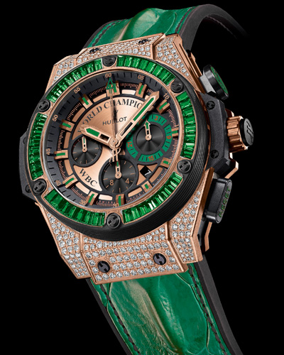宇舶錶(HUBLOT)攜手世界冠軍Floyd Mayweather 5/1在拉斯維加斯共同舉行新聞發布會,宣布為這位必將入選國際拳擊名人堂的拳王與Manny Pacquiao之間的終極對決提供贊助。為了紀念這輝煌時刻,HUBLOT 宇舶錶全球首席執行長 Ricardo Guadalupe 致贈"不敗神話"Mayweather 一款與世界拳擊理事會(World Boxing Council)合作的 King Power WBC Full Pavé with Emeralds 腕錶,對決在5/2於拉斯維加斯的米高梅大酒店舉行。
