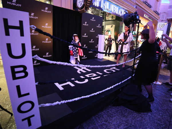 除了向 Mayweather 致贈腕錶與提供贊助外,Hublot 宇舶錶也在位於凱薩皇宮酒店的品牌專賣店舉辦了一場絕無僅有的拳擊體驗活動。眾多嘉賓受邀走上宇舶錶官方互動式擂台,穿戴印有宇舶錶標誌的戰袍、拳擊手套和冠軍腰帶拍照留念。