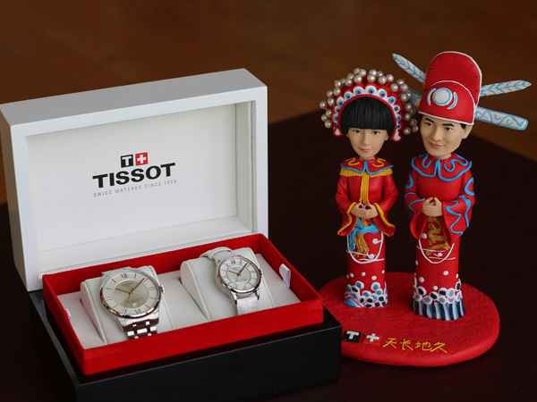 天梭表也特地精心準備TISSOT Chemin des Tourelles杜艾爾系列80小時自動對錶以及量身訂作的賀禮,恭喜他們結為連理,祝福他們天長地久,永浴愛河。