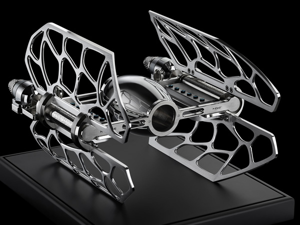 星際大戰STAR WARS是多少影迷們票選出最佳經典電影之一,那些令人難忘打敗叛軍聯盟的瘋狂帝國艦隊群鈦戰機(領結式戰鬥機)也正好是獨立品牌MB&F創辦人Maximilian Büsser設計MusicMachine 3 (MM3)的靈感來源,而事實上,這部片上映時1977年創辦人才10歲呀!