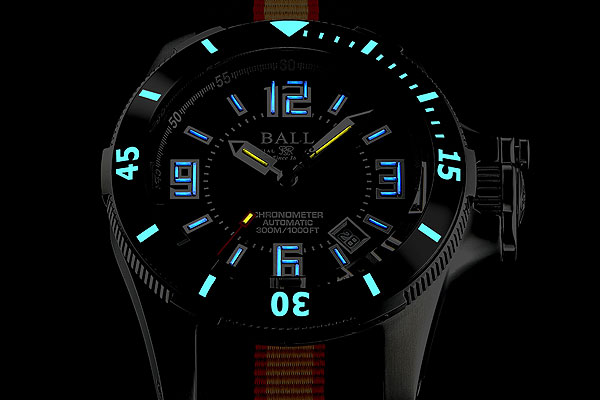 * BALL Watch獨有的31支自體發光微型氚氣燈管,照亮黑夜長達25年,陶瓷制的外圈刻度上帶有夜光塗層