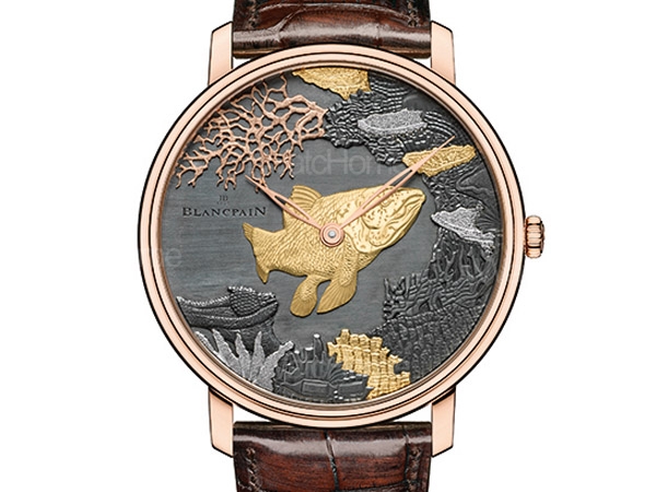 Blancpain 除了雕刻、琺瑯彩繪與大馬士革金絲鑲嵌腕錶著名外,2015 更進入了源自於日本的『赤銅』Shakudo雕繪技術。赤銅是由銅與黃金製造出來的,在藍色與黑色間取得的暗銅綠色,並根據成分與結構而產生不同的變化合金產物。