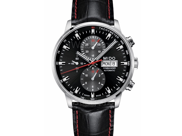 3點鐘方向具備日期及星期顯示,面盤上點綴了動感紅色元素點綴,更使計時功能一目瞭然。防水可達50公尺,寬闊錶盤以藍寶石水晶鏡面打造而成,時、分針及時標均飾有白色夜光Super-LumiNova螢光塗料,讓配戴者無論日夜皆能清晰閱讀時間。透視背蓋更能欣賞以日內瓦波紋及藍鋼螺絲裝飾的機芯,展現MIDO機芯極致工藝。