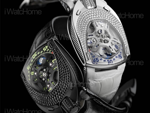 UR-106 “Lotus”有兩個款式,第一款是鈦金屬與不鏽鋼(錶圈、錶冠及錶扣鑲鑽),第二款是黑色PVD塗層鈦金屬與不鏽鋼鑲黑鑽。Martin Frei補充說:「同一款腕錶有兩種個性,一光明一陰暗;人本性追求光明,但黑暗一面令我們的個性更完整。要認清事物之本質就要了解當中的二元對關係UR-106 "Lotus"蓮花腕錶光暗並存,就如一款雙面腕錶。」