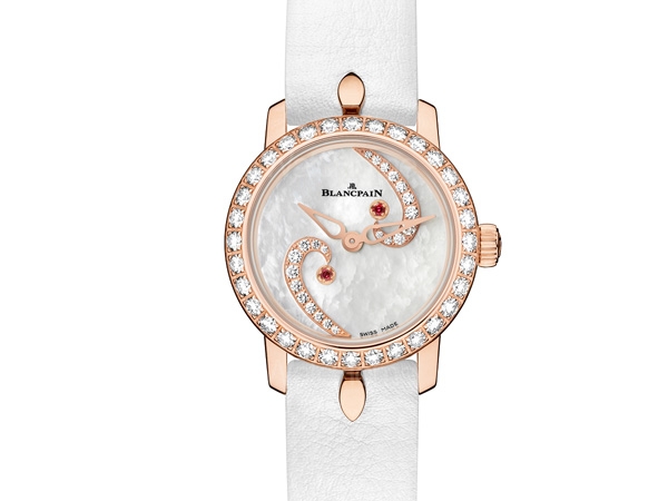 BLANCPAIN在今年慶祝280年特別針對此款獨具紀念性的腕錶,特別推出兩種材質、三款面盤的Lady Bird。除了延續1956年經典款的精巧優雅外,2015年推出的Lady Bird另有3款吊飾可掛在6點鐘方向下方扣環上,在高貴華麗的外觀上更添趣味。