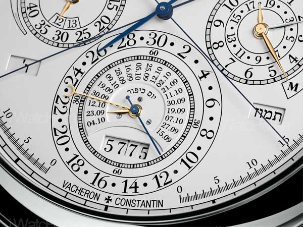 在希伯來曆中,朔望月的天數固定為29或30天交替。但赫色汪月和基斯流月則根據年份,可以是29天或30天。在這裡,日期自動校正功能位於猶太教贖罪日和秒針指示區。日期的兩側,兩個顯示窗則分別以希伯來文顯示希伯來曆的星期和月份。希伯來曆顯示位於猶太教贖罪日指示區內下方的四位數字顯示窗,其計算起始日為創世年,即西元前3760年。如要計算2015年在希伯來曆中的年份,需加上3760年,即5775年。而猶太教再次的新年始於2015年9月,因此為希伯來5776年。提斯利月是希伯來曆的第一個月份。毫不誇張地說,這一成就可以喻為現代製錶領域上的奇蹟。