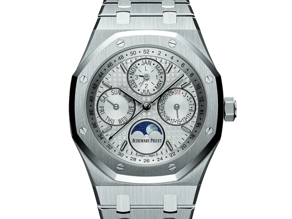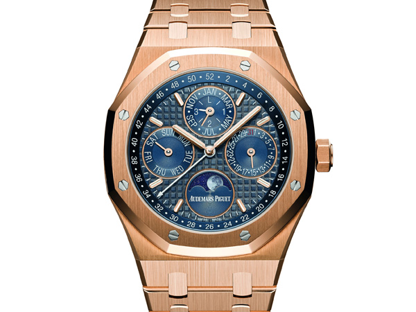 2015年,皇家橡樹系列萬年曆腕錶推出玫瑰金與精鋼材質的不同版本,再度成為萬眾矚目的焦點。全新皇家橡樹系列萬年曆腕錶承續2012年推動的錶殼尺寸革命,以氣勢非凡的41毫米超薄錶殼精彩亮相。