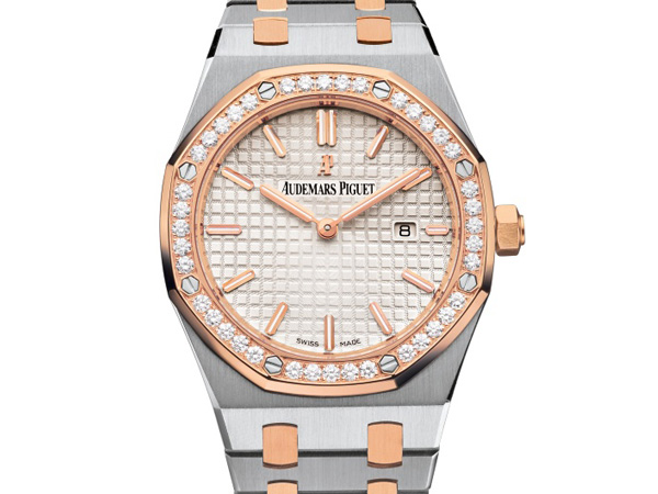 2015年推出的皇家橡樹腕錶首度結合精鋼和玫瑰金,展現愛彼錶廠製作女裝腕錶的聰慧,每個風格、材質和機械細節均經過深思熟慮,製作精美。相互交織的材質為皇家橡樹腕錶注入現代氣息-精鋼的冰銀色與玫瑰金的柔和色調形成強烈對比,締造出嫵媚優雅的外觀。2015年的皇家橡樹雙色腕錶採用石英款式,完美地迎合現代女性的生活規律。