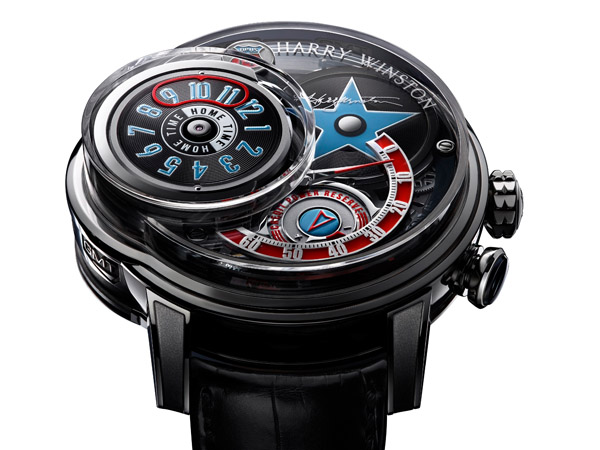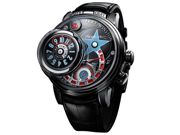 前所未有的微縮點唱機機制是海瑞溫斯頓的專利機制。該機制於功能庫中設有四個顯示盤,各具備一項功能顯示:本地時間、GMT、日期以及帶有海瑞•溫斯頓先生簽名的星星,其外形酷似好萊塢星光大道的「明星」徽章。