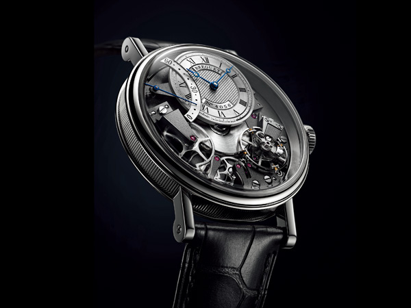 寶璣於2005年推出了標誌性的Tradition 系列7027腕錶,是首款將夾板上的機械裝置完全展露。今年,此系列迎來優秀的新成員:Tradition Automatique Seconde Rétrograde 7097。Tradition 7097將一般腕錶隱藏於底板下的錶橋、齒輪、擒縱機構、發條盒及機芯零部件等一一展現。修長的裝飾強化了對稱錶橋的視覺平衡。錶橋及夾板呈鎚頭形以配合罕有的製作手工技藝及完美的製作技巧,以達致均等一致的修飾效果。金質上鏈擺陀參考當時機芯的風格,12時位的偏心鍍銀金錶盤則飾以傳統的手工鐫刻鞋釘圖案。