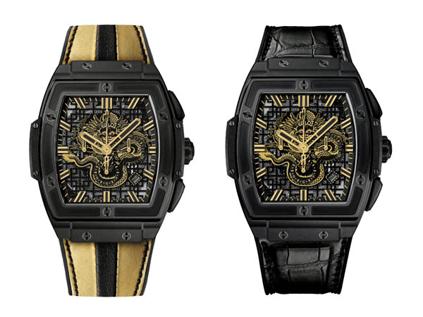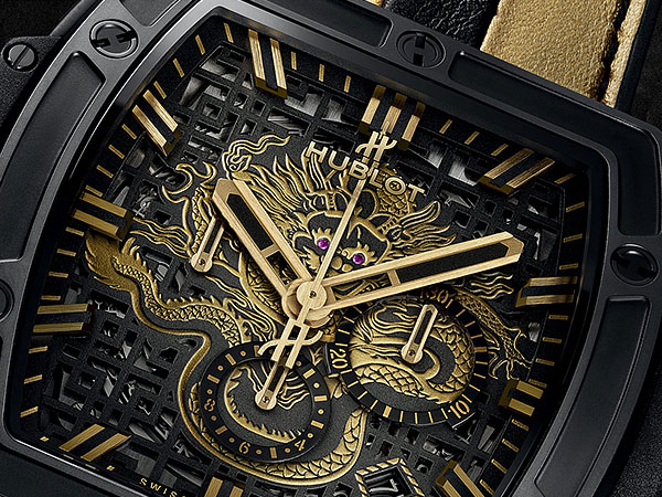 擁有Big Bang的靈魂和宇舶錶純正DNA,宇舶錶以配備酒桶型錶殼的Spirit of Big Bang Bruce Lee Limited Edition李小龍75誕辰周年紀念腕錶向李小龍致敬。由李小龍基金會參與設計,Hublot Spirit of Big Bang Bruce Lee Limited Edition李小龍75誕辰周年紀念腕錶的靈感,源自李小龍親自設計的龍,其刻於家中書桌上。紀念錶款全球限量典藏75枚,售價為新台幣922,000元。該款腕錶搭載Hublot HUB4700機芯,具備5赫茲、即每小時36,000振頻,由278枚零件及31顆寶石組成,擁有50小時動力儲存,藍寶石鏡面的設計讓精美絕倫的鏤空錶盤一覽無遺。日曆顯示窗位於4時30分位置,錶盤設計為中央計時秒針,3個小錶盤分為位於9時(秒鐘)、3時(30分鐘)和6時(時鐘)位置。錶帶為短吻鱷魚皮縫合天然橡膠,給予佩戴者靈活舒適的體驗。