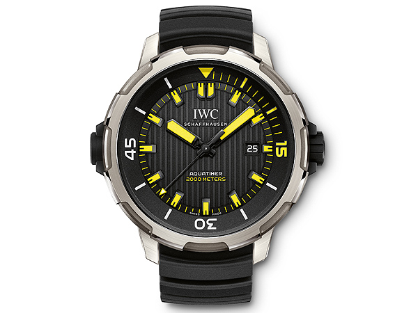 以黑色錶盤搭配黃色指針與刻度全新上市。這款時計的起源可以追溯至1982年專門為掃雷潛水員而製作的潛水腕錶,由設計師費迪南德•亞歷山大•保時捷(Ferdinand A. Porsche)設計而成。憑藉深達2000米的防水性能,海洋時計2000自動腕錶可謂是一款為雄心勃勃的職業潛水員及潛水愛好者打造的專業潛水儀器。腕錶搭載IWC自製的80110型自動上鏈機芯,動力儲備可達44小時。這款時計擁有機械式內外旋轉錶圈、IWC安全潛水系統以及夜光塗層。機芯安裝於直徑46毫米的鈦金屬錶殼中。錶底蓋的深海潛水員裝飾鐫刻和黑色橡膠錶帶為腕錶的整體運動外觀畫上圓滿一筆。