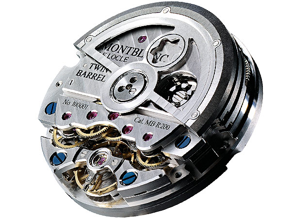 創新設計的錶盤,將MB R200自動上鍊自製機芯隱藏其中,完美結合傳統製錶工藝與最新技術;經銑削之導柱輪透過垂直離合裝置,將機芯齒輪系連結至單按把計時機制,垂直離合裝置 能夠在不產生磨擦力的情況下運作,並確保計時功能啟用後秒針不會自行跳轉。雙發條盒設計提供了72小時的動力儲存,但本機制值得注意的不僅是其技術性能, 同時包括美學設計。傳統的倒角處理、日內瓦紋飾、藍鋼螺絲以及排式齒輪系等表面處理細節,造就了擺輪每小時振動28,800次之完美性能。這款卓越的機芯 均由萬寶龍位於Villeret之錶廠自行製造與組裝。