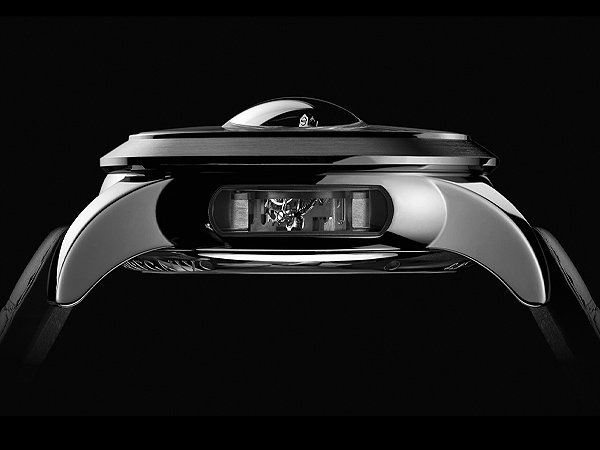 直徑為13.78毫米、具有多維轉軸結構的陀飛輪之上是突出於藍寶石水晶錶鏡的拱形透鏡,與錶鏡其他部分完美融合,為陀飛輪提供了足夠的旋轉空間。透過錶殼9時位置的視窗構造可射入更多可見光,佩戴者可從此處和錶背處直觀欣賞精妙絕倫的陀飛輪機械結構。白金款三軸陀飛輪腕錶的一大全新特徵是錶盤顯示區域更加開闊,可更清晰呈現三軸陀飛輪結構之精巧特性,愈發彰顯腕錶的現代感。