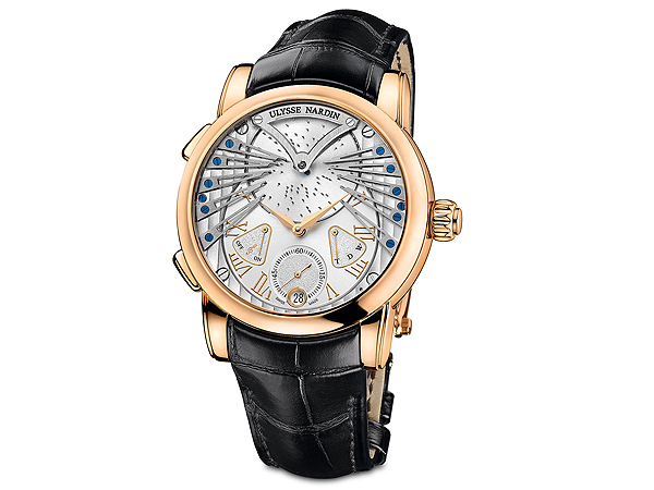《雅典船錨陀飛輪腕錶》Ulysse Anchor Tourbillon無疑是機械製錶技術的最佳典範,完美地將黃金與琺瑯完美交織結合在一起,這以雅典錨式恆定擺動擒縱裝置(Ulysse Anchor Escapement)完全突破傳統設計的製錶方法,花費8年的時間獨家研發出矽製「雅典錨式恆定擺動式」擒縱裝置,透過擒縱裝置的作用,使平衡擺輪不受外力影響而能恆定擺動,如此複雜的細密結構組裝於60秒旋轉一圈的陀飛輪之中,它的裝置框架包括35件零件,但重量不超過0.4克。不論兩個相連發條盒的儲備動力多寡,這非凡的振盪器擺動機械裝置的擺幅都能維持恆定不變,透過6點鐘位置的大視窗口可欣賞陀飛輪運轉的美麗姿態。