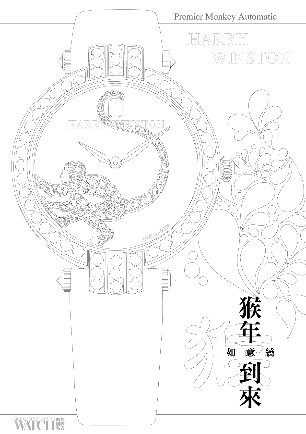 海瑞溫斯頓HARRY WINSTON這只卓時Premier系列猴年限量自動腕錶面盤除了猴子外沒有太多花紋,不過光是塗猴子身上的馬眼雕刻以及錶圈上的鑽石就夠你忙的囉!