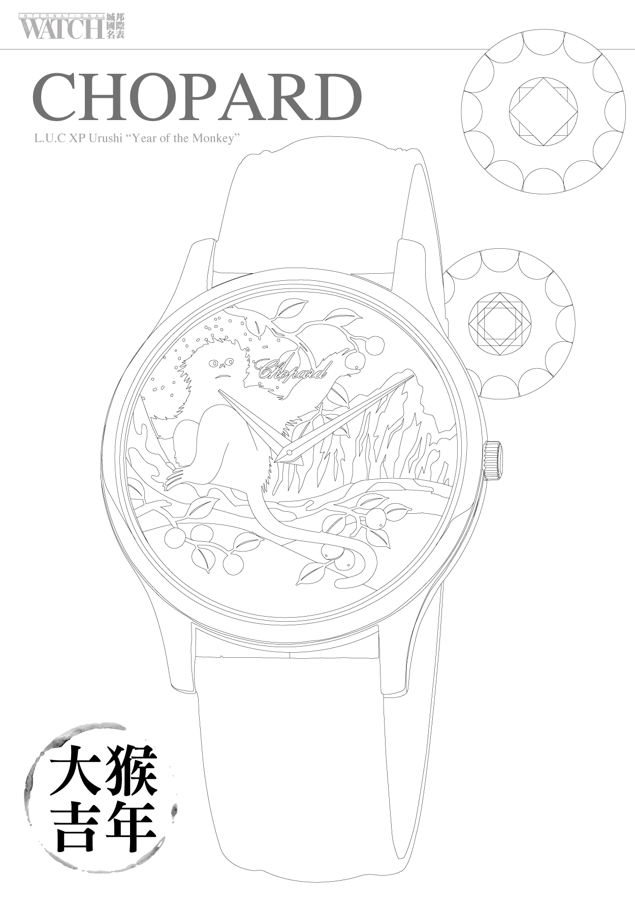 蕭邦CHOPARD 這只L.U.C. XP Urushi猴年蒔繪腕錶面盤除了猴子外,背景十分熱鬧,就看大家要怎麼配色囉~八顆蜜桃不知道會不會有人每顆都塗上不一樣的顏色呢?!