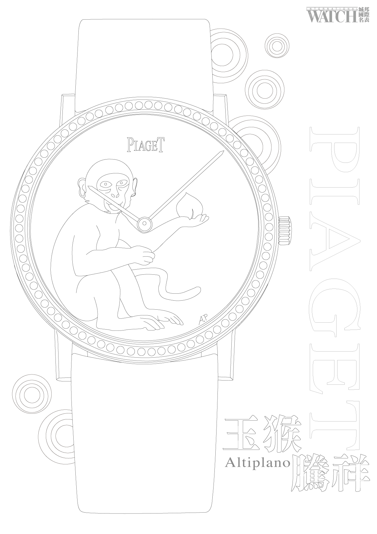 伯爵PIAGET的 Altiplano腕錶猴年紀念款猴身面積非常大,空白的身軀不知道會不會有人幫牠加件衣服保暖,錶帶感覺也是可以揮灑創意的地方,大家好好來發揮創意吧!