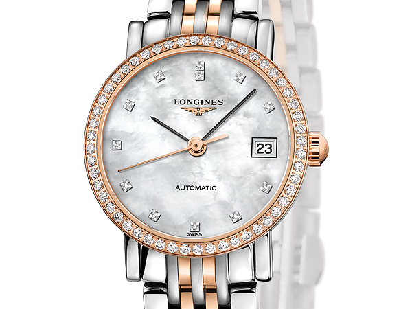 金色是高貴而忠誠,優雅是恆久雋永,一段相伴一生的情感正應該是優雅而深刻。浪琴表優雅系列配備L595自動上鏈機械機芯,以簡約經典的設計,呈現流暢線條的圓形錶殼,描繪和諧的相守相知。不鏽鋼與玫瑰金交織的雙色金精緻鏈帶,搭配錶殼鑲嵌52顆頂級美鑽,白色珍珠母貝面盤上以黑色的時針與分針結合玫瑰金秒針,在優雅中帶來驚喜對比,更加完美地傳達堅貞的愛情。