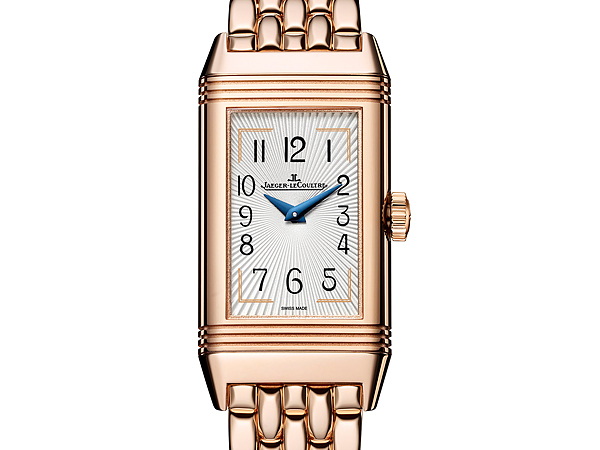積家Reverso One Cordonnet翻轉系列鍊錶饒富趣味,卻不失優雅。此腕錶融合了古典和現代美感──小巧的皮革錶帶 ,靈感源自一枚1936年的時計;錶殼卻是截然不同的前衛設計,與錶帶相映成趣卻不顯突兀。新穎與古典融會相成於設計之中。雙色錶殼設計採用了玫瑰金和不鏽鋼材質,營造出幾何美感,而藍色太子妃式指針在白色太陽放射飾紋面盤上顯得格外迷人。錶鍊設計堪稱此錶款的點睛之筆,散發出纖細雋永、華美細膩的女性氣質。