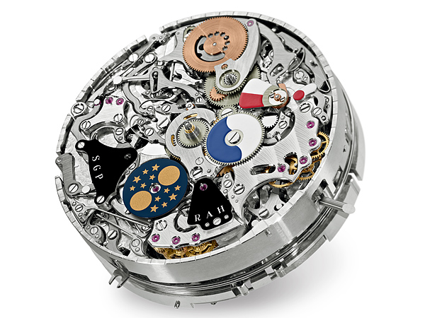 功能:擁有20項複雜功能,時間指示,日期、星期、月份、日夜顯示,第二時區時間,萬年曆(閏年週期、四位數字年份顯示)、月相顯示、打簧報時(大、小報時、三問、打簧響報時間、打簧報示日期)