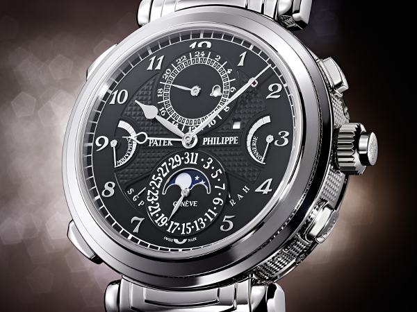 最後,百達翡麗宣佈旗下恆常生產最複雜腕錶排名有變,編號6300G新款大師報時腕錶將躍身首位。腕錶展現渾然新穎與獨特姿態,雲集二十項複雜功能,包括五項響音報示功能,為鐘錶基準奠下新義。白金錶殼由人手綴以交錯飾釘圖案,與編號5175R大師報時腕錶全人手精雕錶殼各領風騷。後者屬於紀念時計,限量七只作品。