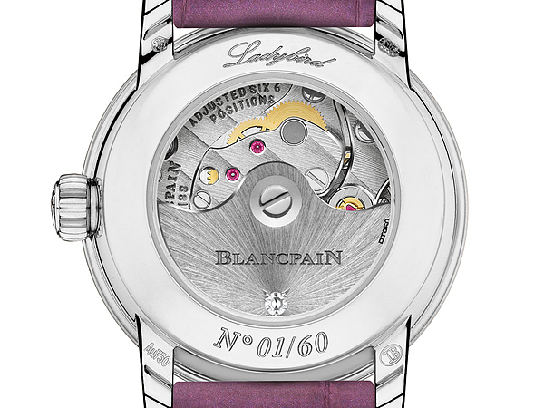 Ladybird腕錶在1956年推出時搭載世界上最小的圓形機芯Cal.R550,機芯尺寸只有11.85mm、但是已擁有超過40小時的動力儲存。擒縱輪上的軸尖直徑僅為0.07mm比一根髮絲還要細小。