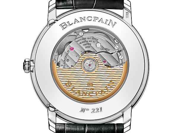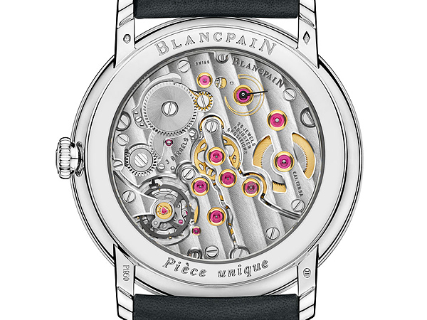 錶殼設有BLANCPAIN獨創的錶耳下方隱藏式調校裝置。1點鐘位置的調校器能校正星期,而設於5點鐘位置的調校器可校正月份。此外,佩戴者還可以透過錶冠進行兩地時間、日期及時間的快速調校。