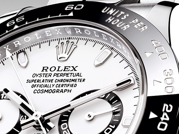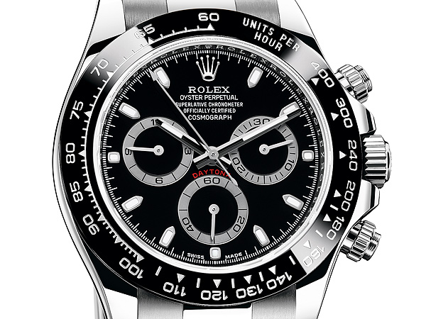 Oyster Perpetual Cosmograph Daytona外圈刻有測速計是腕錶的一大特徵,測量平均時速最高可達時速400英里或公里。以高科技製造的新款Cerachrom陶質外圈有著不少優點,不僅抗腐蝕,防刮損,即使受紫外線照射也不褪色。