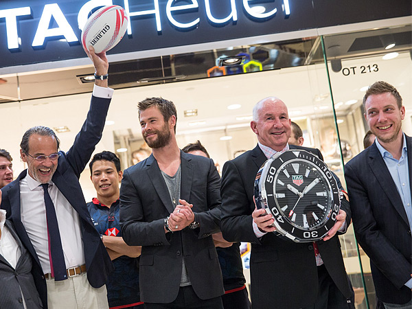 TAG HEUER豪雅於上周在香港海港城專門店舉行開幕典禮,宣佈品牌成為「2016國泰航空/滙豐香港國際七人英式橄欖球賽」的官方指定計時及贊助商,一同見證緊張刺激的賽事,並再次傳達 「#DontCrackUnderPressure」(無懼挑戰,成就自我)的精神。「雷神」、同時也是TAG HEUER品牌大使─ Chris Hemsworth、LVMH Watch & Jewellery大中華區總裁Benoit Toulin、LVMH Watch & Jewellery大中華區市場總監Loic Biver、豪雅大中華區總經理潘錦基、香港英式橄欖球總會行政總裁韋域安先生及ROAR Management創辦合夥人William Ward齊聚香港,見證這個歷史時刻。