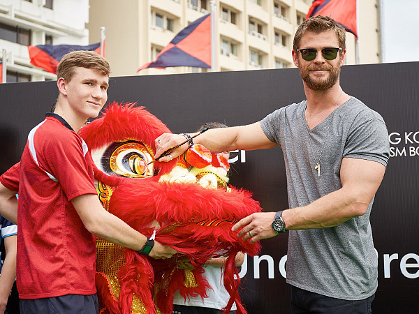 潘錦基聯同Chris Hemsworth、Benoit Toulin及Loic Biver將支票致送予韋域安先生。與此同時,豪雅亦為遠來的Chris Hemsworth準備了別具香港特色的醒獅獅頭作為禮物,寓意活力充沛及繁榮興盛,Chris Hemsworth先生現場為獅頭點睛,為當日的活動畫上完美句點。