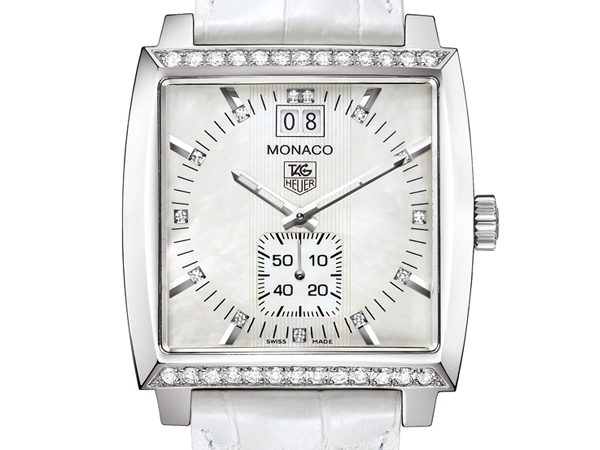 豪雅系列中的經典款式Monaco腕錶以其特殊的方型外錶雋永流傳,就彷彿典型溫柔優雅的媽媽,總是想著該如何為子女打造更好的投資。豪雅為此特別選出一只以鑽石裝飾錶面、白色貝母製作面盤與鱷魚皮打造錶帶的Monaco腕錶,以華麗的外型搭配媽媽雍容華貴的氣質,加乘貴族氣息,是寵愛媽媽的「腕」美選擇。