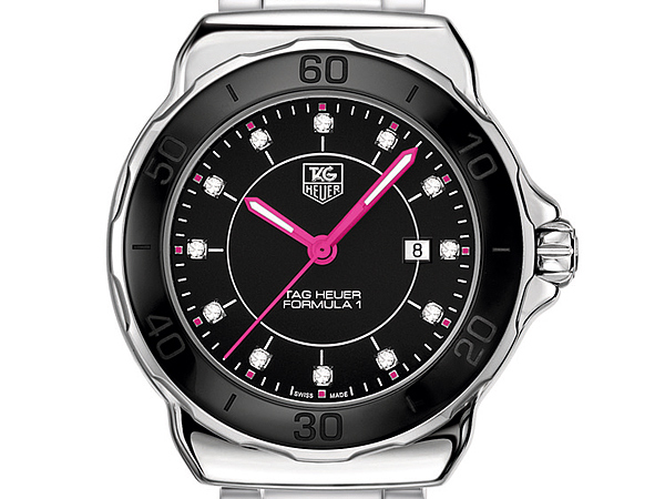 豪雅全球限量350只的鄧紫棋同名腕錶的黑色陶瓷錶圈刻以指示分鐘的黑色刻度,搭配藍寶石水晶鏡面,黑色面盤上12顆華美鑽石鑲嵌的時標清晰可見,並飾以粉紅色指標,3點鐘位置裝有日期顯示窗,不僅美觀,更兼具實用性能, 訴說藝術與音樂融合的時尚美學。