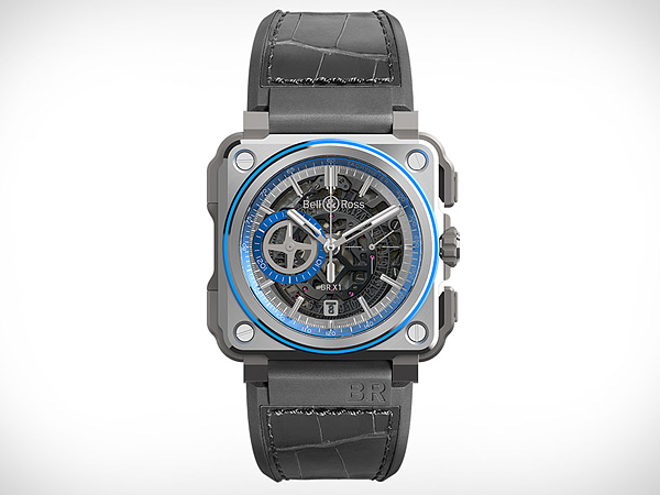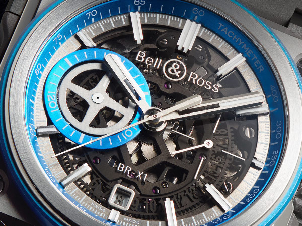 兼具“高級鐘錶”(Haute Horlogerie) 的裝飾與極致輕盈感的BELL & ROSS Hyperstellar計時碼錶的“電機”動力來自於自動上弦式機械鏤空機芯。其上板橋經過黑色 DLC (仿鑽結晶碳) 處理,呈“X”形,成為其標識。“X”是美國太空總署(NASA) 實驗專案的代號,腕錶因此得名BR-X1。BR-X1 HyperStellar計時碼錶帶有60秒中央計數器。讀秒計時功能中的分鐘倒數計時器位於9點鐘位置。該計時器採用一個如同渦輪機葉片的超輕鋁質盤以代替指針。計速必備的速度計刻度以藍色顯示在凸緣上。