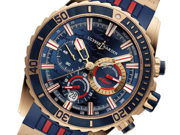 蔚藍色的擺陀印有鎚頭鯊圖案,透過藍寶石水晶後底蓋更可飽覽機芯運轉之美。每一項細節與層次堆疊,創製出美妙絕倫的海洋魅力。除此之外,同樣搭載UN-150自製研發機芯的潛水計時碼錶也推出經典的黑色面盤選擇,舉手投足間盡顯男士剽悍風格。不銹鋼款建議售價NT$408,250,限量300只;18K玫瑰金款建議售價NT$1,242,500,全球限量發行99只。