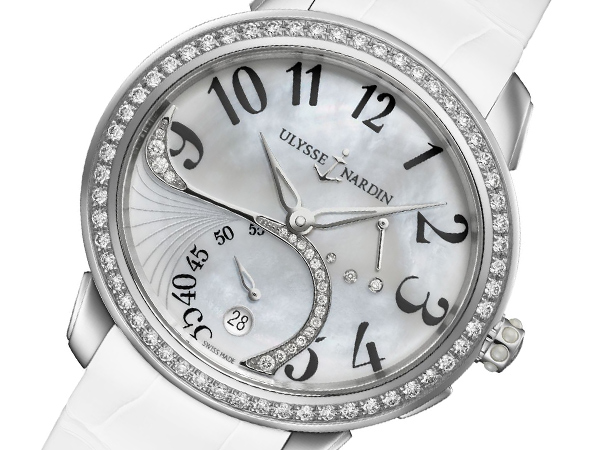 雅典錶《玉玲瓏》腕錶將珠寶錶與頂級複雜腕錶工藝結合,且在機芯與設計上的用心也不亞於男錶。使用UN-310自製機芯,並以鑽石或漸層紅寶石圍繞珍珠母貝面盤,綻放令人目不轉睛的迷人光彩。獨具特色的水滴狀指針,以水珠滴入面盤所激起柔美的鑽石波紋之意象呈現;並在6點鐘日期窗位置,以流線感的圓滑帶鑽曲線主導整體視覺,並將此意象延續到時標之上。
