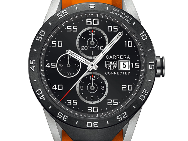 採Intel Inside處理器的TAG HEUER Connected腕錶,直徑為46 mm,在設計上仍是一枚不折不扣的計時腕錶,錶殼、錶背和錶耳採用當代感十足的2級鈦金屬,較不鏽鋼或黃金等傳統材質更輕盈且堅固耐用。本款腕錶搭配極具質感的黑色橡膠錶帶(另有紅、藍、白、橘、綠及黃六色可供選擇)和同為2級鈦金屬打造的摺疊扣,呈現高級腕錶獨有的優雅氣質、特色及精緻面貌。
