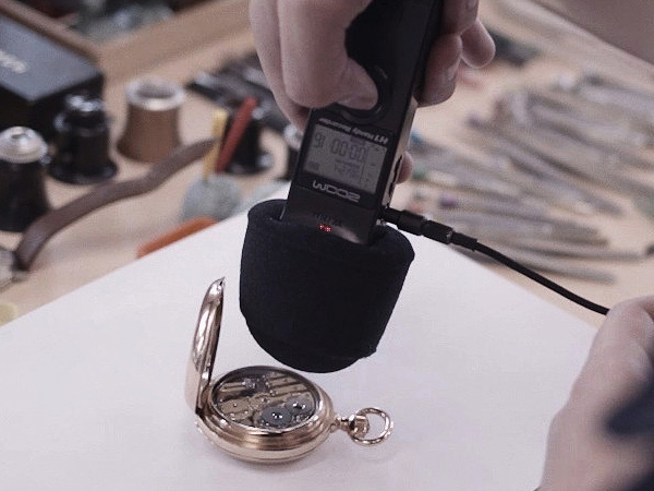 10點45分:愛彼製錶工坊內各項工作的開始。銼刀沙沙作響,夾雜著各種機器的運作聲。製錶師手工製作與機械操作的結合,得以生動體現。