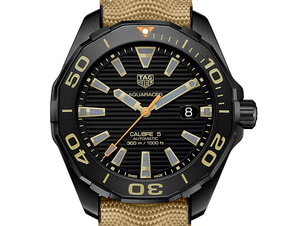 在品牌享負盛名的AQUARACER系列潛水錶方面,新款AQUARACER陶瓷錶圈防水300米自動腕錶在材質搭配上也有更多元的選擇,在男錶部份首推駝色尼龍錶帶款式,寬大厚實的43毫米鈦金屬錶殼,搭配陶瓷錶圈,顯得更厚實有力,展現出運動男兒的陽剛特質,單向旋轉錶圈上刻意加大的分鐘數字,以及面盤上螢光小時刻度,愈加凸顯其潛水錶的非凡設計,喜歡水上運動的男性一定不容錯過,建議售價NTD90,900。