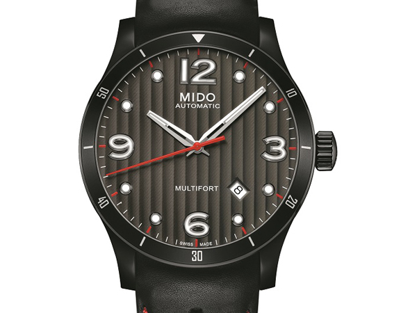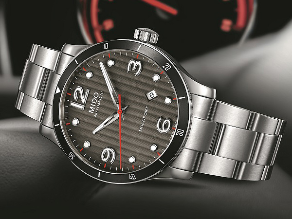 炭灰色面盤以不鏽鋼錶殼防護,並飾有日內瓦波紋,雙面以防眩藍寶石水晶玻璃鏡面防護。同時,42毫米的錶徑,環繞著黑色鋁合金材質錶圈,日期顯示於4.30位置的視窗,時針及分針白色夜光Super-LumiNova®塗料處理,在黑暗中更容易辨識。紅色元素點綴在秒針及外圈時標上,如同賽車儀表板的設計,傳遞追求速度的熱血基因。透明的錶背讓配戴者可以細細欣賞精緻裝飾的自動機芯、日內瓦波紋的自動盤與MIDO標誌。防水功能高達100米,搭配著316L不鏽鋼拋光錶帶及摺疊扣環。