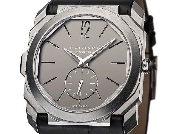 寶格麗2016年的創紀錄之作,則是以鈦金屬錶殼,打造出機芯厚度僅3.12mm的Octo Finissimo三問腕錶,整體錶殼厚6.85mm,成為史上最薄的三問錶,由於鈦金屬輕盈具彈性,比起一般合金材質能達到更好的共鳴效果,面盤上的鏤空時標也強化了聲音傳導音效。