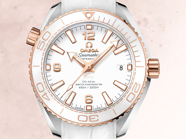 此錶款配備39.5毫米精鋼及18K Sedna™Gold錶殼,並搭載OMEGA 8800同軸擒縱自動上鏈機芯,動力儲存55小時。錶面以抗磨損藍寶石水晶打造,白色陶瓷錶盤飾有阿拉伯數字,3點鐘位置設有日期視窗。