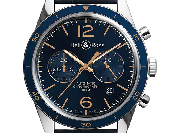 專為飛行員設計的Vintage BR AERONAVALE計時碼錶是一款融功能性和優雅風格於一身的時間測量儀器。該錶款另外增加兩個計時盤,飾以蝸形璣鏤刻花紋;還增加了藍色陽極氧化鋁材質的60分鐘刻度錶圈。球面藍寶石水晶玻璃錶鏡既突出腕錶的經典風格,又彰顯力量感。以可靠性和精度著稱的瑞士製造自動上弦機械機芯為兩款腕錶提供動力,透過透明錶後蓋一覽無遺。