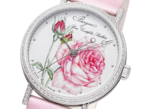 面盤:Rosa Centifolia Bullata”主題琺瑯彩繪面盤,寶璣式針尖鏤空白金指針