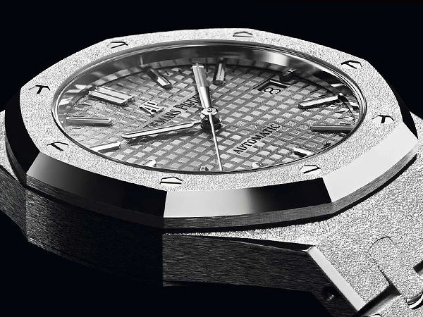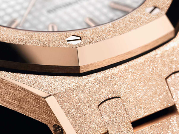 愛彼製錶師面臨的挑戰是在皇家橡樹系列腕錶的錶殼與錶帶上採用磨砂工藝,並保留這一系列經典簡約的線條設計。此外,由於獨特的漸變式錶帶結構,製錶師需要同時考慮拋光與拉絲處理工序的順序。