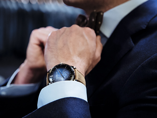 腕錶的圓形藍寶石水晶錶鏡呈凸面造型,面盤與指標有著彎曲的邊緣,充分營造出立體的效果。優雅奪目的fumé 煙燻錶盤是亨利慕時的經典標誌,也是一種低調奢華的呈現。